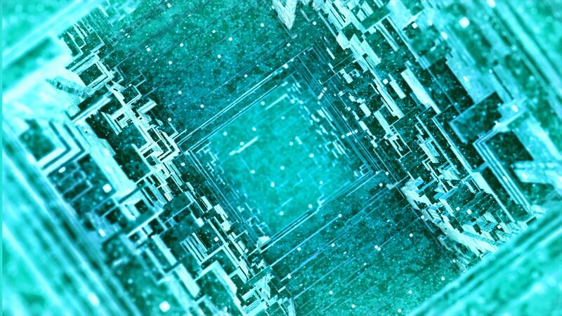 Abstract construction background looking like endless corridor of blocks. Motion. Fractal animation of moving 3D shapes. Pro Video