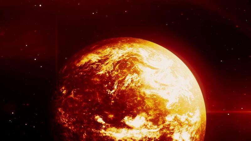 Abstract spinning red unknown planet on outer space background. Motion. Breathtaking cosmic background with the sun. Pro Video