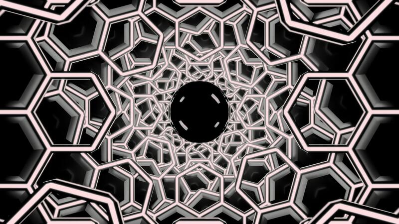 3D tunnel with hexagons and moving black hole. Design. Tunnel of 3d honeycombs with moving black liquid at end. Filling tunnel of honeycombs with black liquid Pro Video