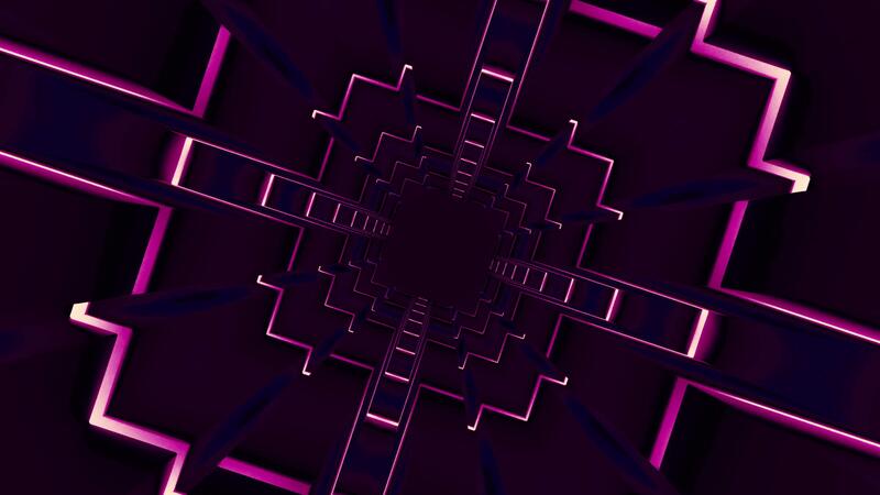 Rotating square tunnel with flashing end. Design. Geometric square tunnel with lines. Lines and squares in rotating tunnel Pro Video