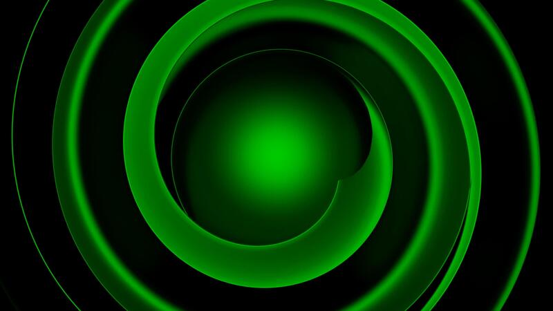 Abstract green spherical objects with ripples around. Design. Swirling colorful background with hypnotic effect. Pro Video