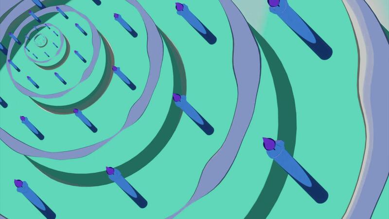 Abstract animation of birthday cake. Design. Circles move in streams with the image of cake. Festive animation with cake and candles Pro Video