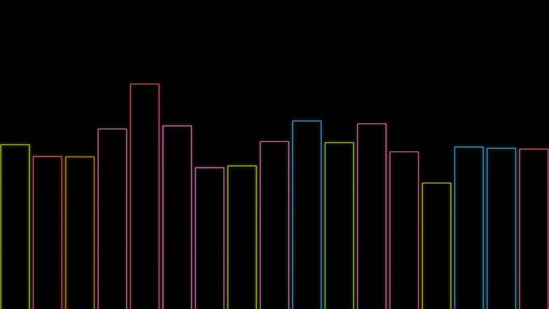 Black background . Design. Clear bright lines of different colors in animation that jump up and down like graphs . Pro Video