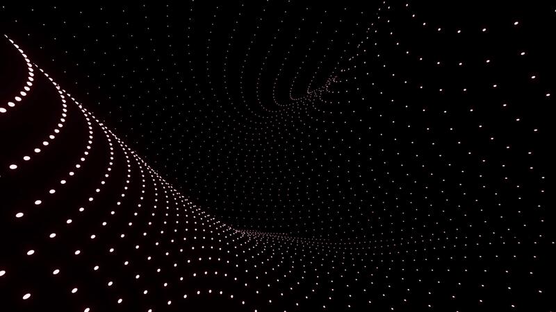 3D space with curving flow of dots. Design. Futuristic space with curving lines in flow. Dotted lines move in geometric curves on black background Pro Video