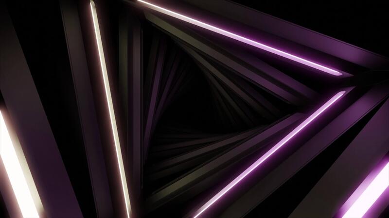 Triangular 3d tunnel with flashing lines. Design. Rotating 3d tunnel with triangles and glowing lines. Dark triangular tunnel with flashing lights Pro Video