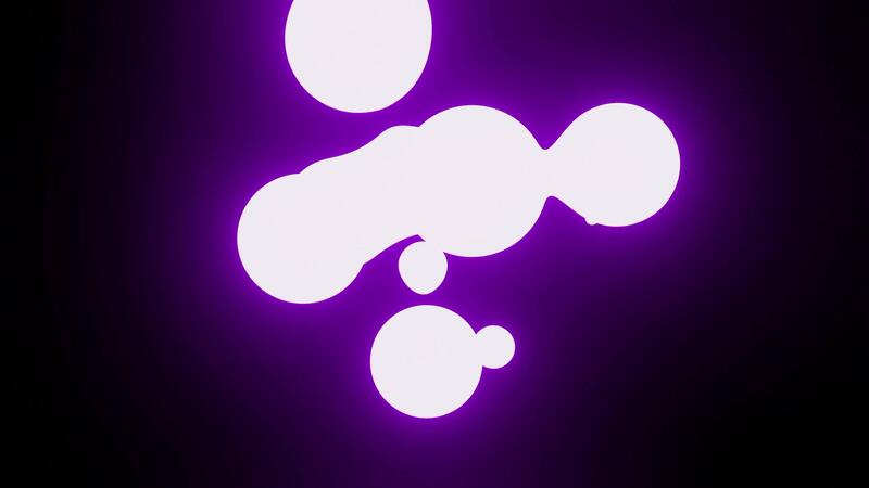 Dark background with blots. Design.Bright white dense spots in the animation connect and disconnect and are highlighted with a purple hue. Pro Video