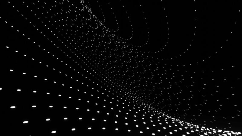 Background with small polka dots pattern and hallucination effect. Design. Flowing canvas of tiny dots on a black background. Pro Video