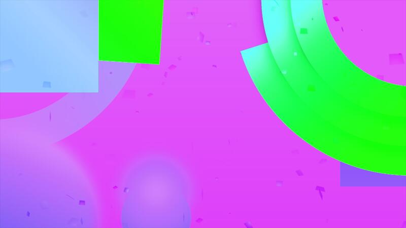 Abstract geometric background with flying particles and moving shapes. Motion. Contrasting bright pattern, geometry for children. Pro Video