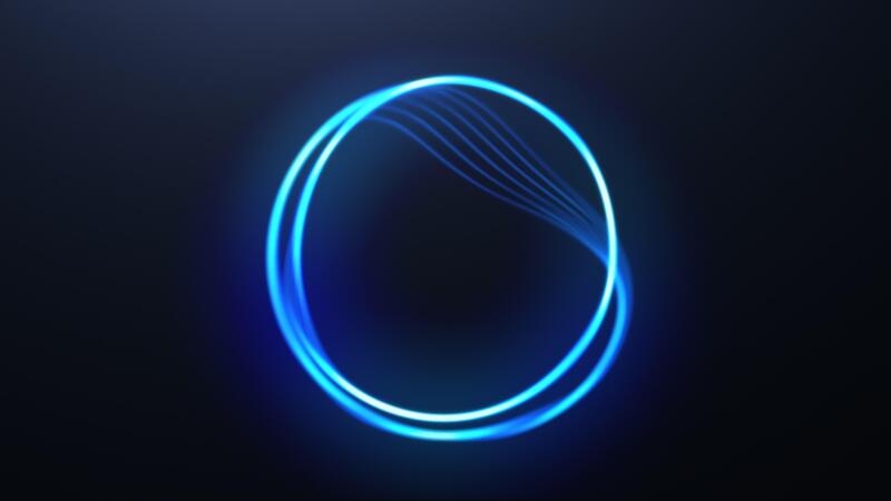 Black background . Motion . A bright neon ring in animation that moves apart in different directions and draws patterns with bright rays. Pro Video