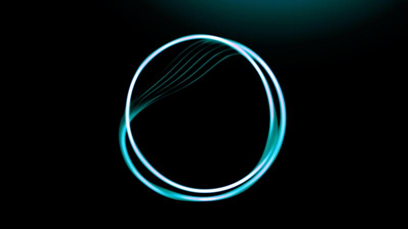 Black background. Motion.A huge white circle in animation that draws bright white patterns in 3D format. Pro Video