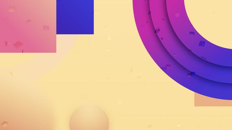 Colorful geometric background with a part of circle, rectangles and flying particles. Motion. Moving figures pattern. Pro Video