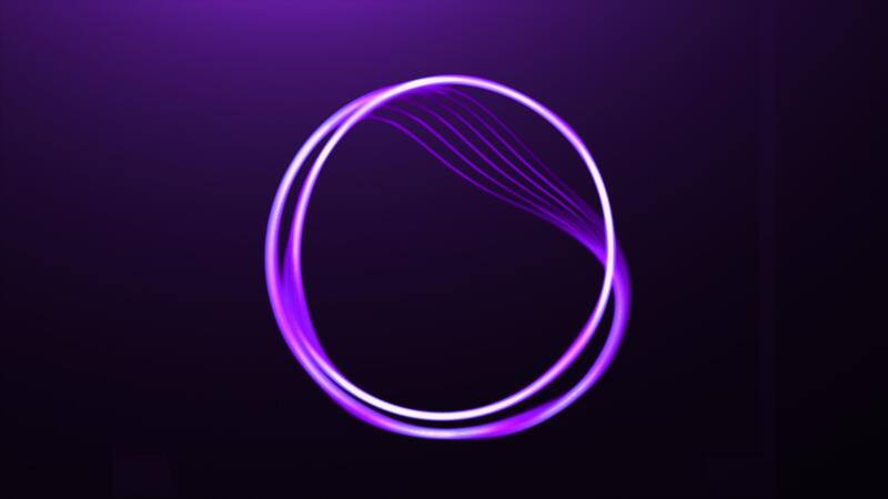 Green and purple background . Motion . A bright background with a glowing ring in the animation that separates and the light creates different patterns with a beam. Pro Video