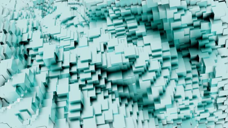 Moving stream of squares in matrix. Design. 3D cubes move quickly in flow of virtual space. Error with distortion in 3d matrix space Pro Video