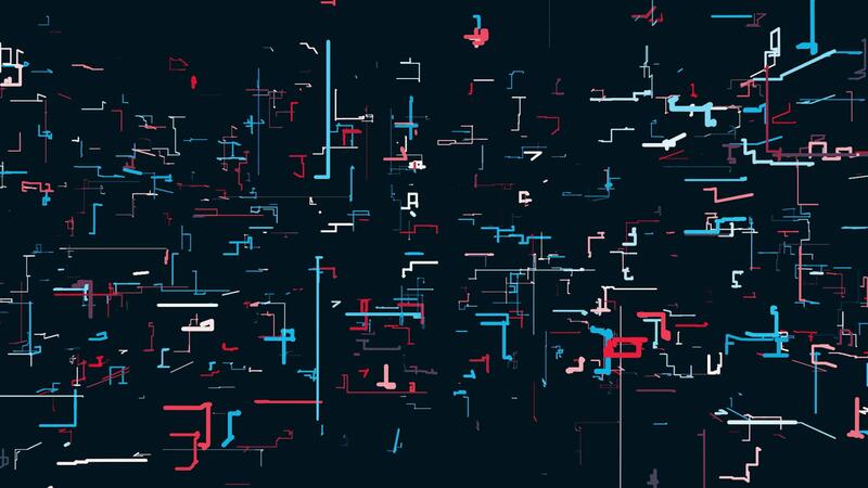 Moving lines in schematic pattern. Motion. Colorful schematic pattern of lines in technological style. Background of moving schematic lines in style of computer chip Pro Video