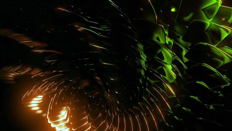 Abstract spinning spherical object with many scales on a black background. Design. Rotating and transforming round shape. Pro Video