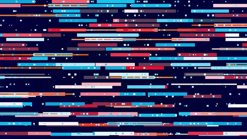 Horizontal, parallel graphic lines moving from side to side on a dark blue background. Motion. Randomly sliding segments. Pro Video