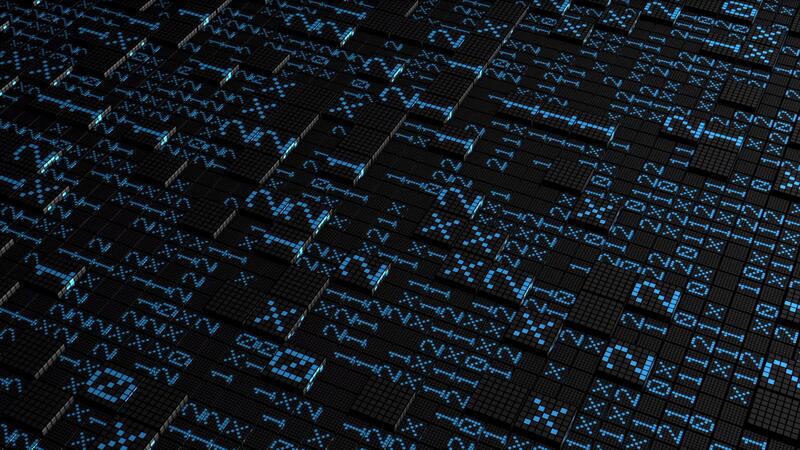 Black background. Motion . Bright buttons highlighted in blue and green showing different codes in the animation. Pro Video