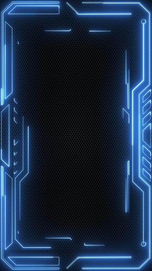 Vertical - HUD frame element technology background with a border of blue neon light beams on black mesh texture. This tech border UI viewfinder animation is full HD and looping. Free Video