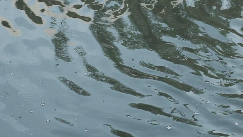 Dark water with ripples on the surface. Defocus blurred transparent white colored clear calm water surface texture with splashes and bubbles. Water waves with shining pattern texture background. Free Video