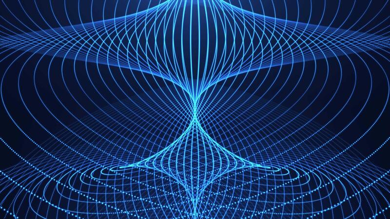 Abstract hi-tech futuristic spiral of digital lines and dots rotating on a dark background Pro Video