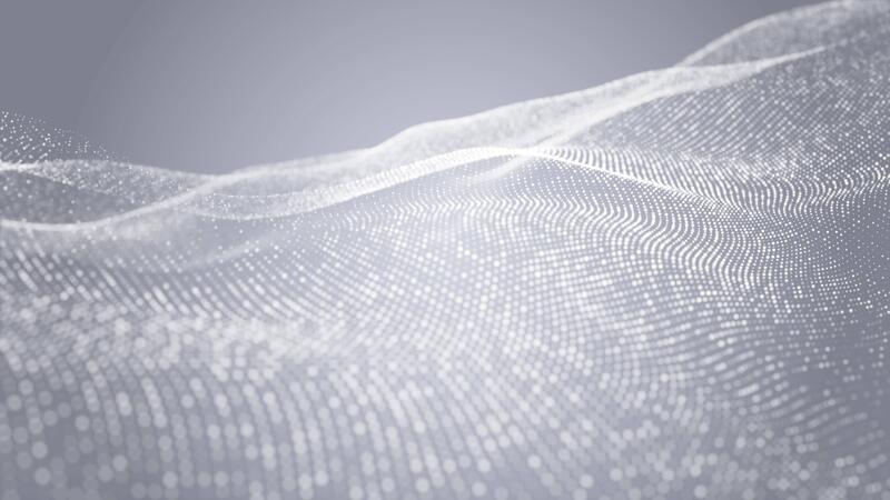 Abstract digital dynamic particle waves with light motion lights background on clean white gray background, data flow, cyber technology, big data visualization. 3D rendering. Seamless looping Pro Video