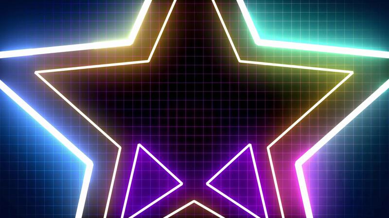 Abstract pattern star shape glow neon. Texture grid wireframe backdrop. Retro style 90s background. Free Video