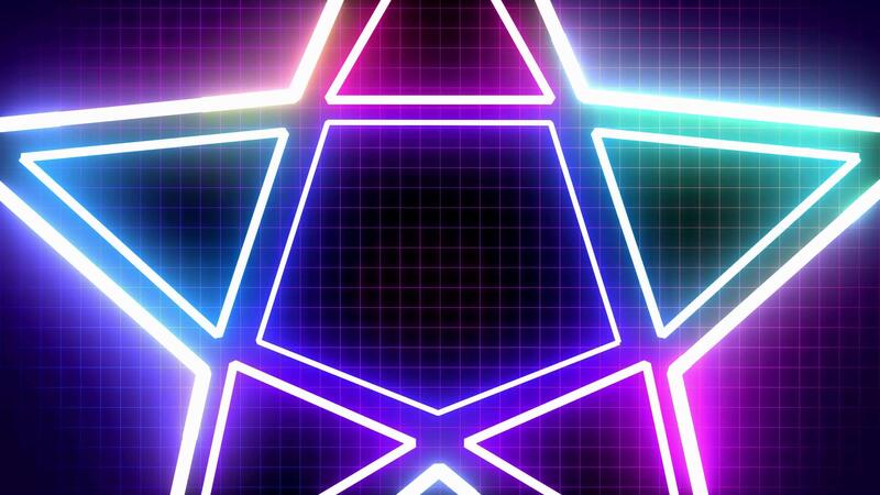 Abstract pattern star shape glow neon. Texture grid wireframe backdrop. Retro style 90s background. Free Video