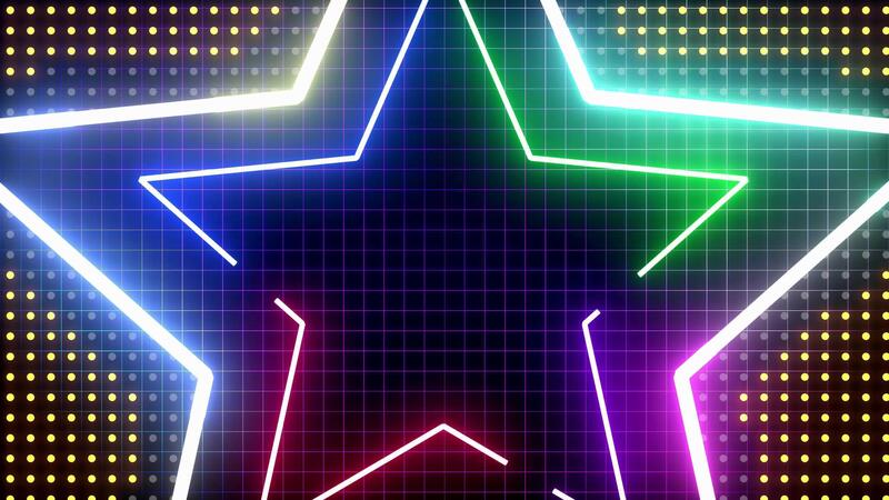 Abstract pattern star shape glow neon. Texture grid wireframe backdrop. Retro style 90s background. Free Video