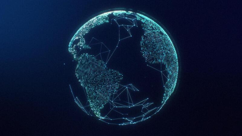 Digital Dotted Blue Planet Earth Big Data, Digital Clouds. Global Network Connection. Business, Communication, or Digital Concept. Plexus Globe Pro Video