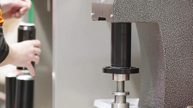 closed with the lid of beverage cans with beer in an automatic capping machine in a brewery Pro Video