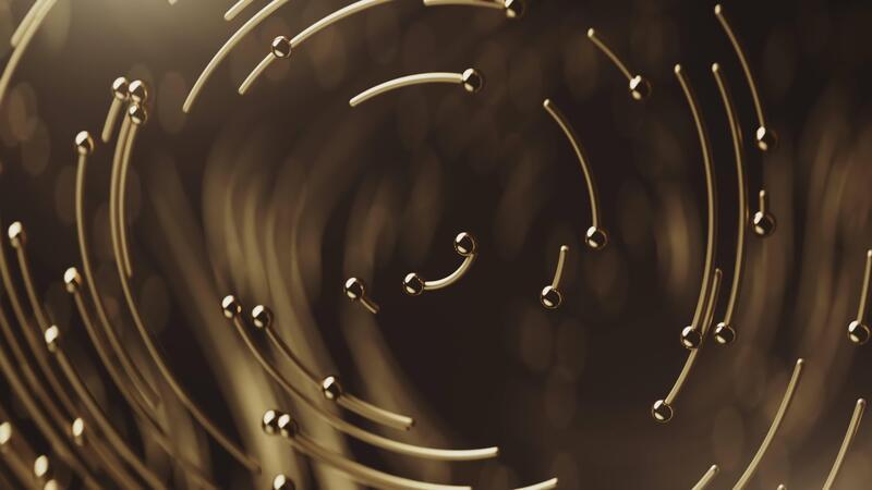 Curly golden abstract in circle lines together with particles on blurred bokeh background Pro Video
