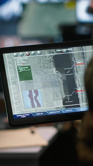 Vertical Soldier in military HQ base using digital tablet to gather information on enemy troops. Close up shot of officer using software on device to do assessment of enemy vulnerabilities, camera A Pro Video