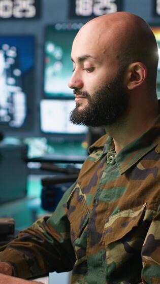 Vertical Army specialist employing AI tech to improve military warfare systems and threat monitoring. IT admin uses neural networks to enhance combat operational capabilities, camera A Pro Video