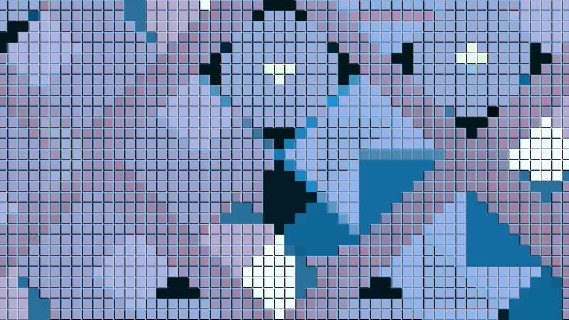 A bright stained glass window made of small squares. Motion.Multicolored pixels in animation drawing patterns . Pro Video