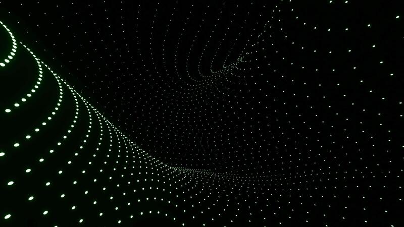 3D space with curving flow of dots. Design. Futuristic space with curving lines in flow. Dotted lines move in geometric curves on black background Pro Video