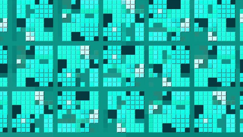 Background with bright pixel pattern changing in squares. Motion. Pixel retro pattern changing in squares. Squares with moving game image in pixels Pro Video