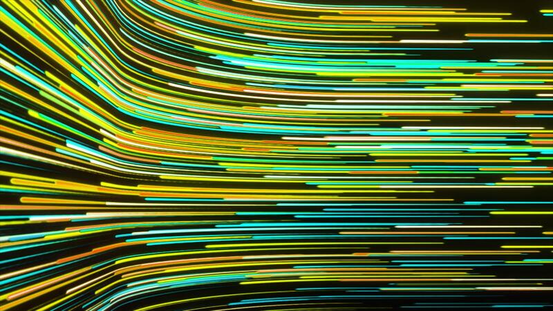 Lines move in futuristic flow with bend. Motion. Colorful stream of lines in cyberspace. Turn flow with colorful stripes Pro Video