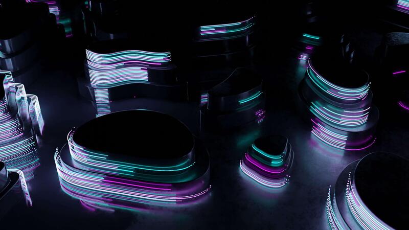 Bright running lines of color in abstraction. Design.Dark objects on which different colors run in the animation. Pro Video