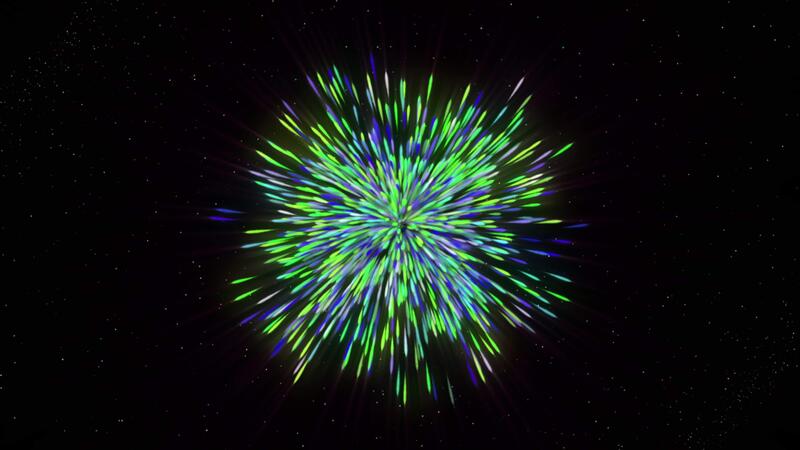 Abstract multicolored lines spread to the wide circle from one point. Motion. Concept of celebration, exploding petard. Pro Video
