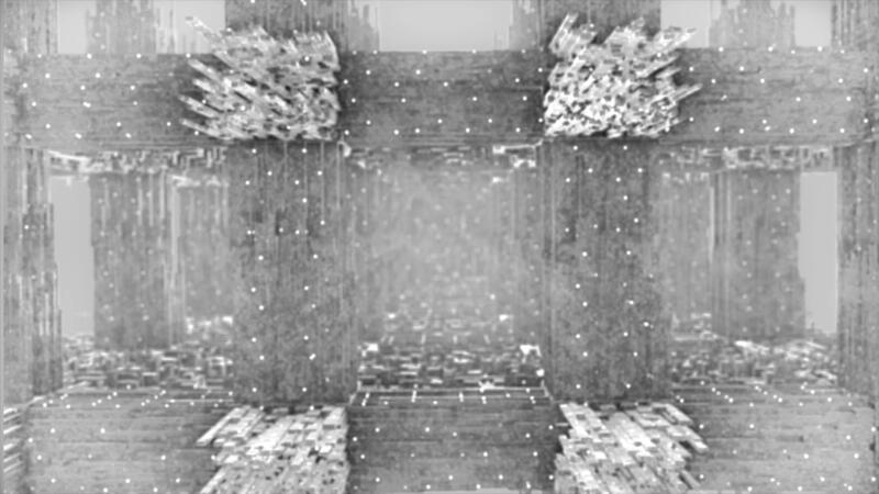Abstract psychedelic pattern with the effect of the flight through construction labyrinth of fractals. Motion. Transforming columns and walls. Pro Video