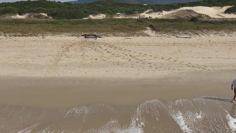 Man walking and running on sand dunes near the beach. Aerial image with drone following the man. Image from above. Health concept. Pro Video
