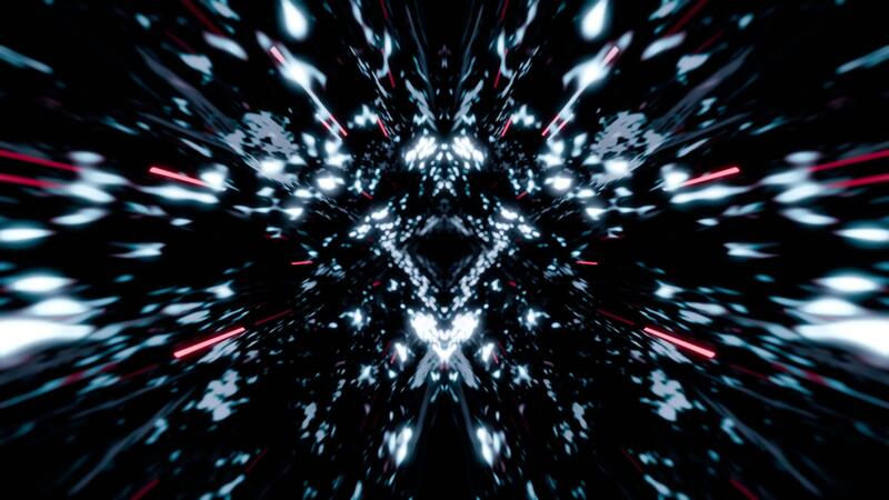 abstract white fractal with subtle red line tunnel going forward fast, with dark background, seamless loop Free Video