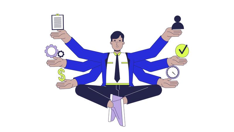 Multitasking in management line 2D animation. Product manager working on tasks simultaneously 4K motion graphic. Multi-task juggling linear animated cartoon flat concept, white background Pro Video