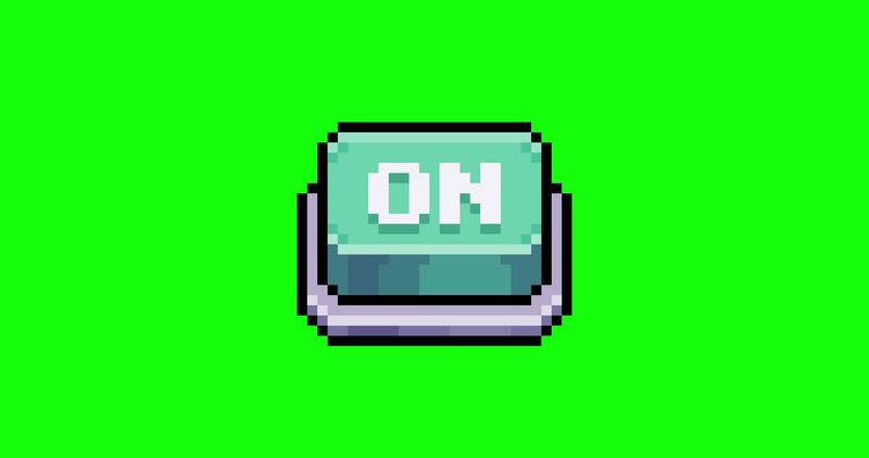 Pixel art animation of green button being turned on on green background. Animation turning on a button in pixel art and 8 bit style Pro Video