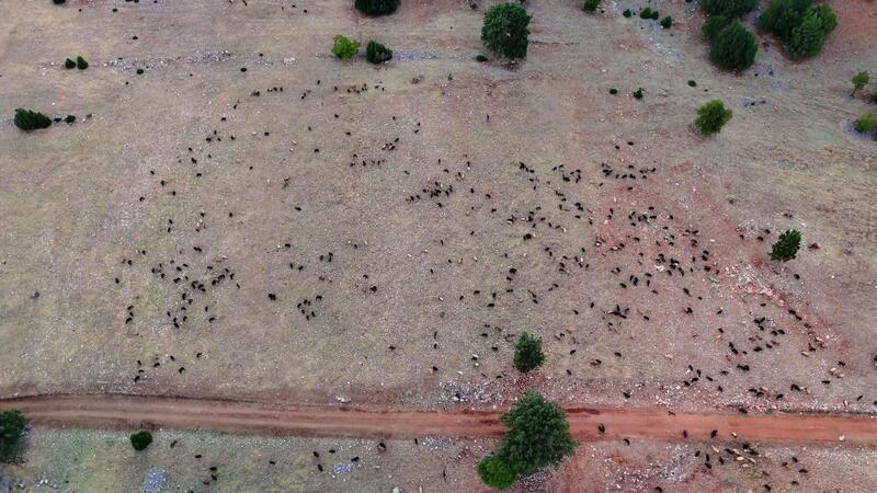 Shepherds utilize a sheepdog to round up a flock of sheep in the australian outback, guiding them forward while following closely in a truck Pro Video