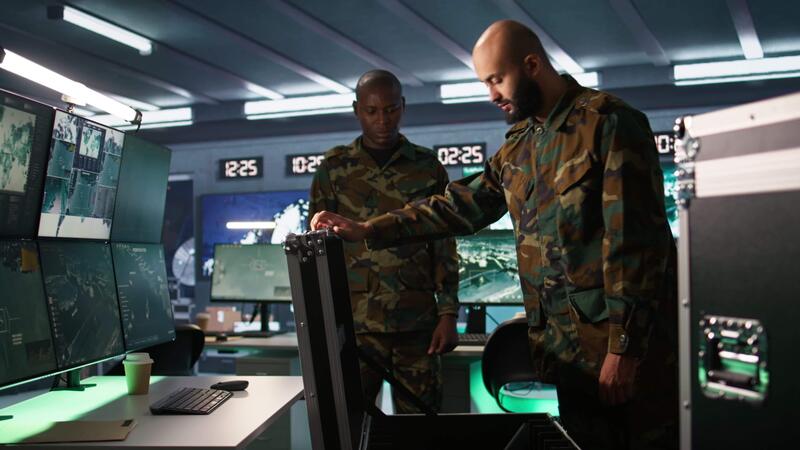 Army soldiers packing weapons able to engage targets at extended range with accurate, lethal fire. Military units loading guns with bullets, preparing for enemy suppression mission, camera B Pro Video