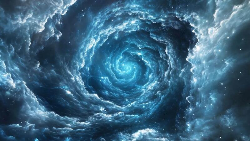 A mesmerizing swirling vortex of blue clouds and sparkling stars, creating a captivating cosmic atmosphere in deep space. Pro Video