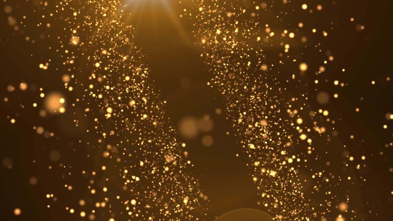 Abstract background of gold particles. Gold shiny background. gold dust and beautiful bokeh on a black background. seamless loop. Pro Video