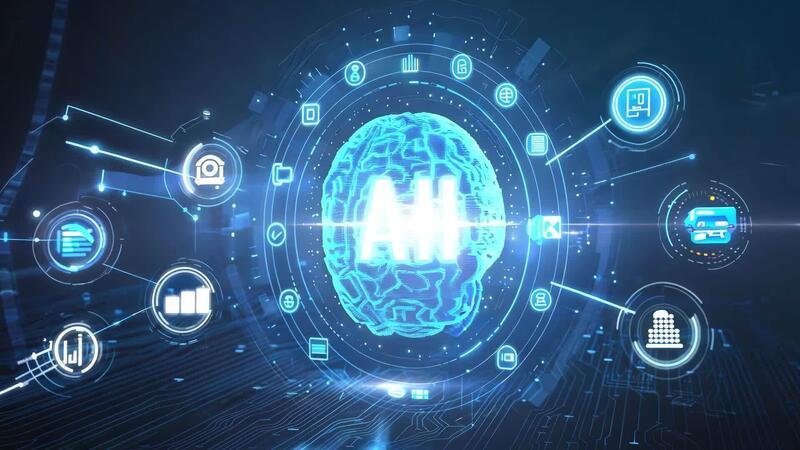 Futuristic digital representation of a brain symbolizing artificial intelligence, interconnected with technology and data. Free Video