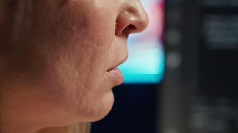 Extreme closer up shot of happy computer engineer satisfied after futureproofing company network from system failures. Smiling IT worker pleased after managing to increase data security, camera A Pro Video